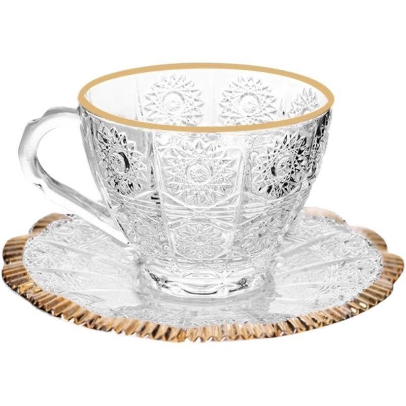 Vintage Kaffeetasse aus geprägtem Glas mit Sonnenblumen