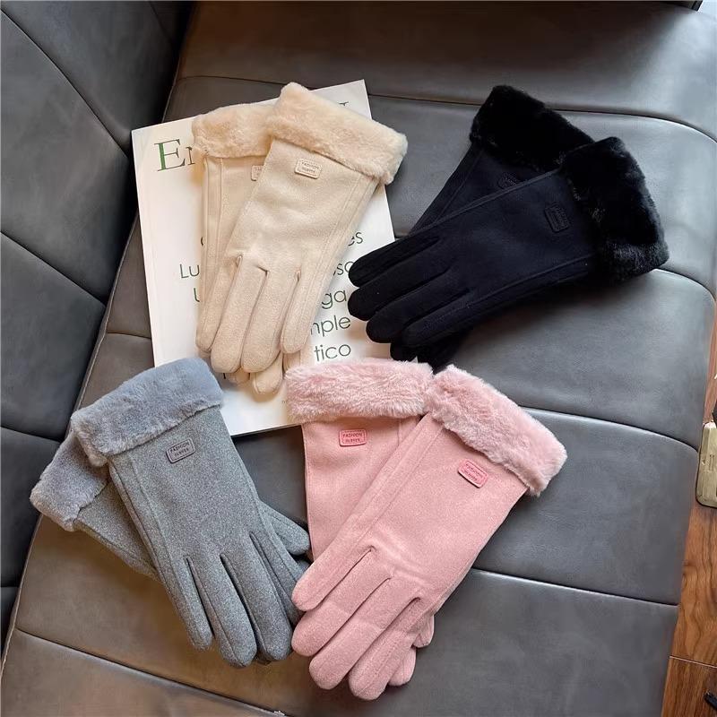 Mouth plush new wool gloves plush thickened cotton winter gloves cold, windproof and warm outdoor riding