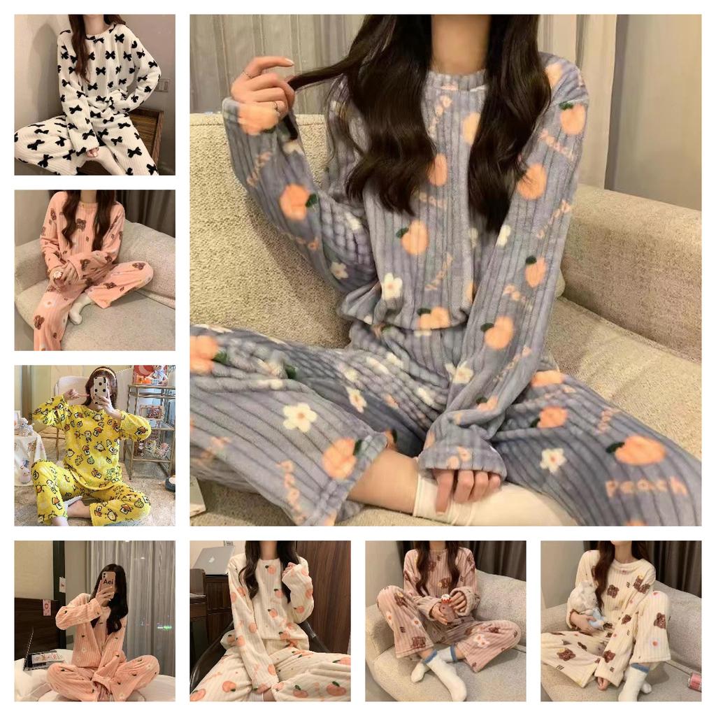 Niedlicher Süßer Herbst Winter Pyjama Damenbekleidung Neu Korallenvlies Warm Verdickt Langärmeliges Loungewear Set Weihnachten Geburtstag
