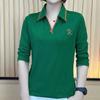 Neues Basic-Shirt für Damen Lockerer Herbst Langarm-T-Shirt für Damen Bestickter POLO-Kragen Mittelalterliche Mutter Shirt