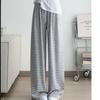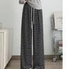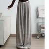 Neue lässige Hose mit hohen Bund und schwarz-weißen Streifen für Frühling und Herbst für Damen, drapierte gerade Klebreishose, bodenlange Hose mit weitem Bein