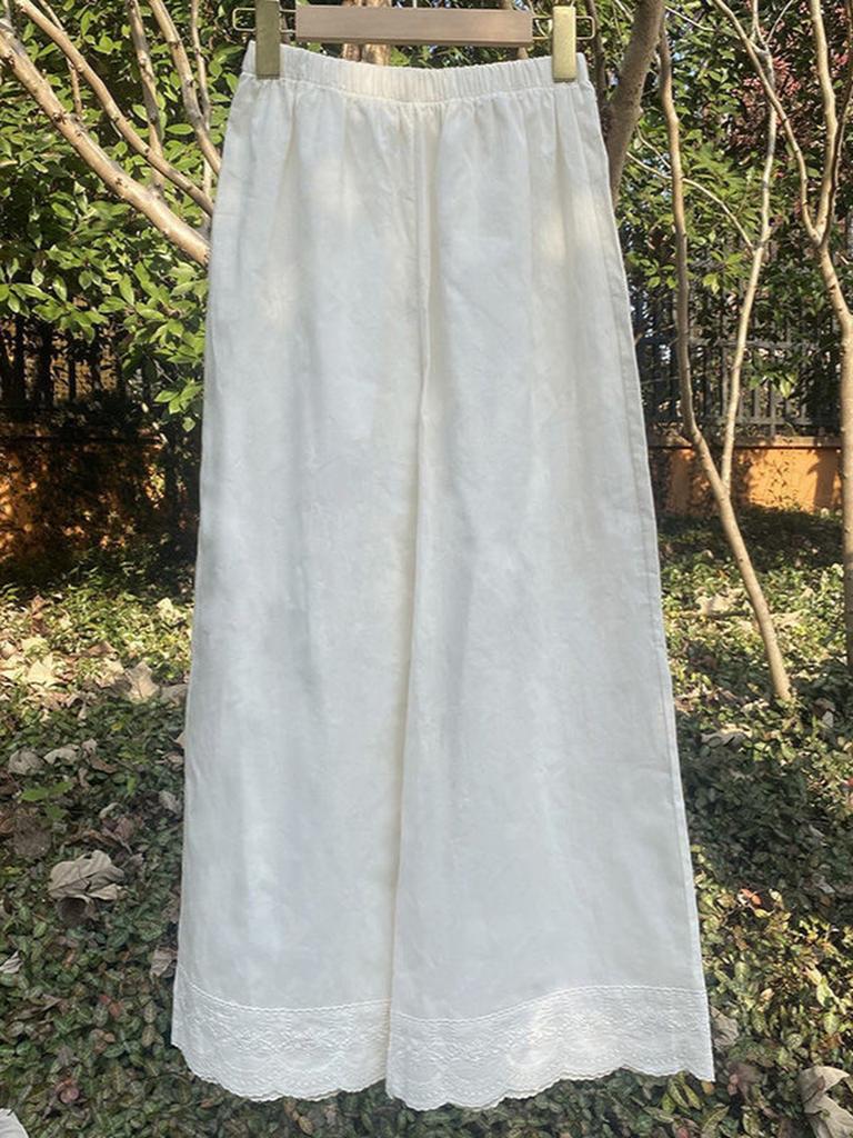 Frühling/Sommer Neuer Stil Böhmisch Vintage Spitze Patchwork Weitbeinige Hose Lässig Baumwolle Leinen Damenbekleidung