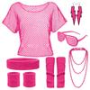 80er Jahre Kostümzubehör Stirnband Ohrring Netzshirt Halskette Armband für 80er Jahre Retro Party Dekorationen
