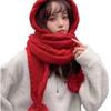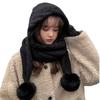 Knitted Scarf Hat with Pompoms Ball and EarFlaps Soft Pullover Hat Winter Accessory Unisex Headwear for Outdoor Activity