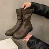 Women Ankle Boots Autumn Fashion Round Toe Buckle Comfortable Non Slip Outdoor Short Boots Retro Mid-calf Boots