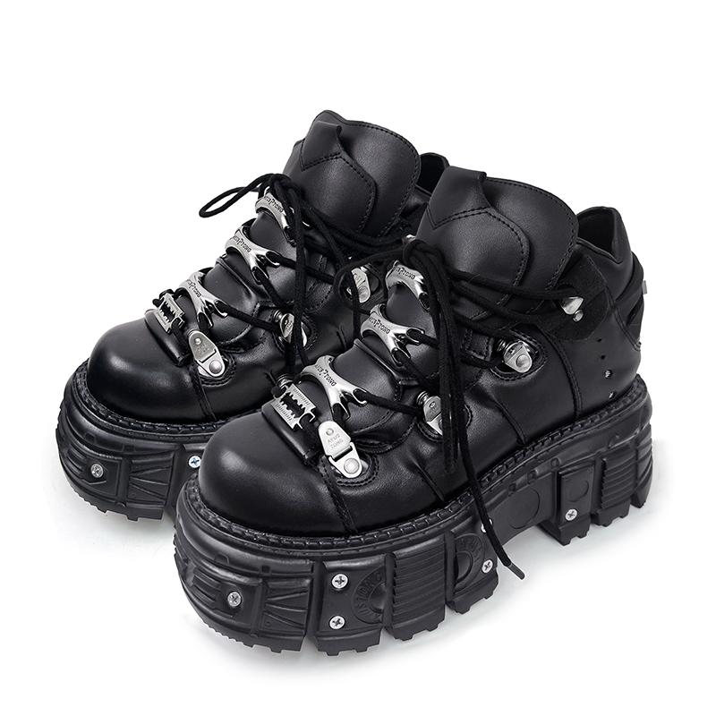 Neue Damenschuhe Punk-Stil Schnürschuhe Absatzhöhe 6CM Plateau-Schuhe Frau Gothic Knöchel Rockstiefel Metalldekor Frau Sneaker