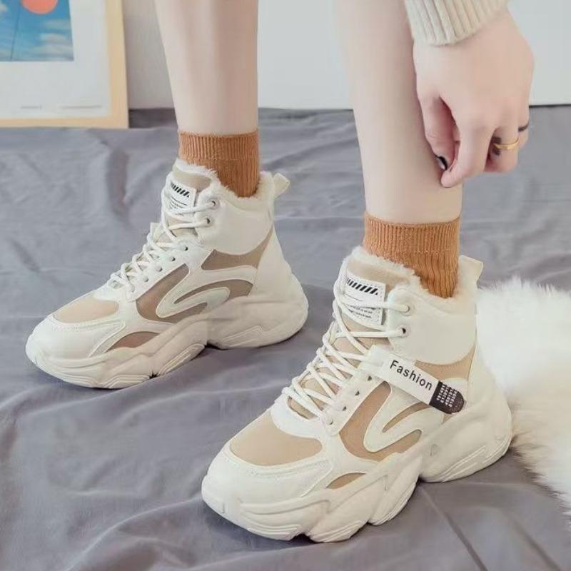 Modische High-Top-Schnür-Dad-Schuhe mit Wollfutter für den Winter, für koreanische Studentinnen, warme und modische Baumwoll-Sportschuhe mit dicker Sohle für Damen