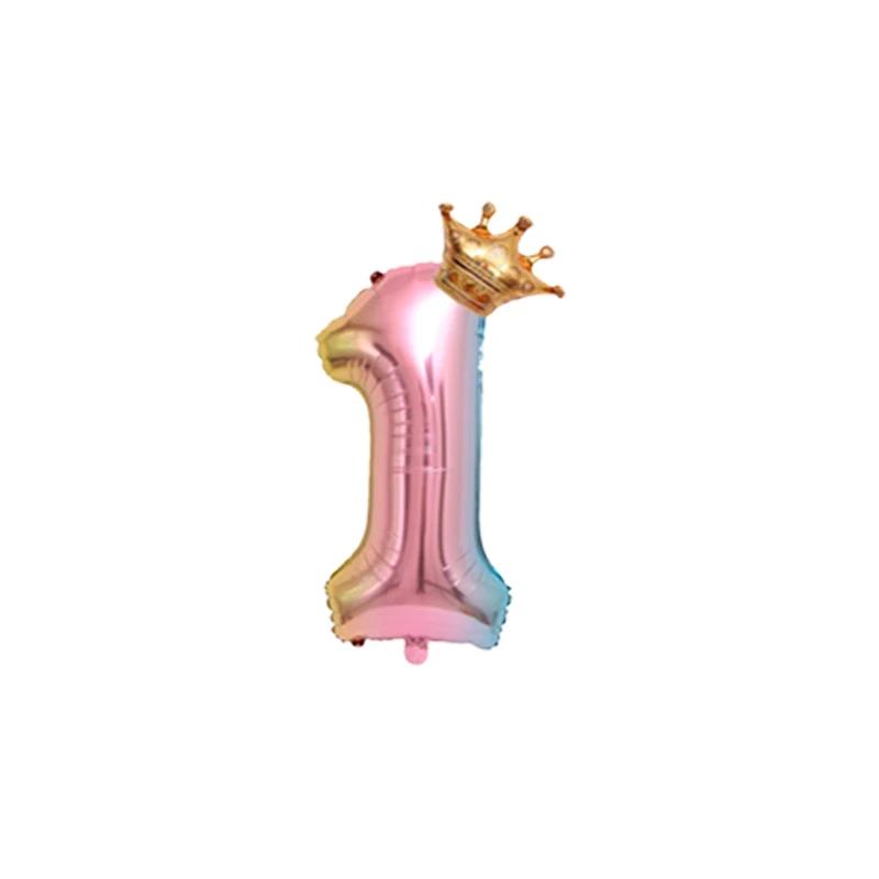 32 Zoll große, rosafarbene Farbverlauf-Kronenballons mit den Zahlen 0-9, Kindergeburtstag, Hochzeit, Partydekoration, Babyparty-Zubehör, Spielzeugbälle