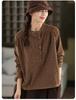 Johnature Damen Vintage Cordhemden Oberteile Stehkragen Langarmblusen Herbst Chinesischer Stil Damenhemden
