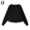 Izzue Damen V-Ausschnitt Strickpullover mit Fransen