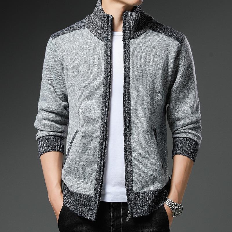 Neuer Herbst- und Winter Herren-Cardigan-Pullover Plus Samt und Verdickt Farblich passend Modischer Herren-Pullover Pulloverjacke