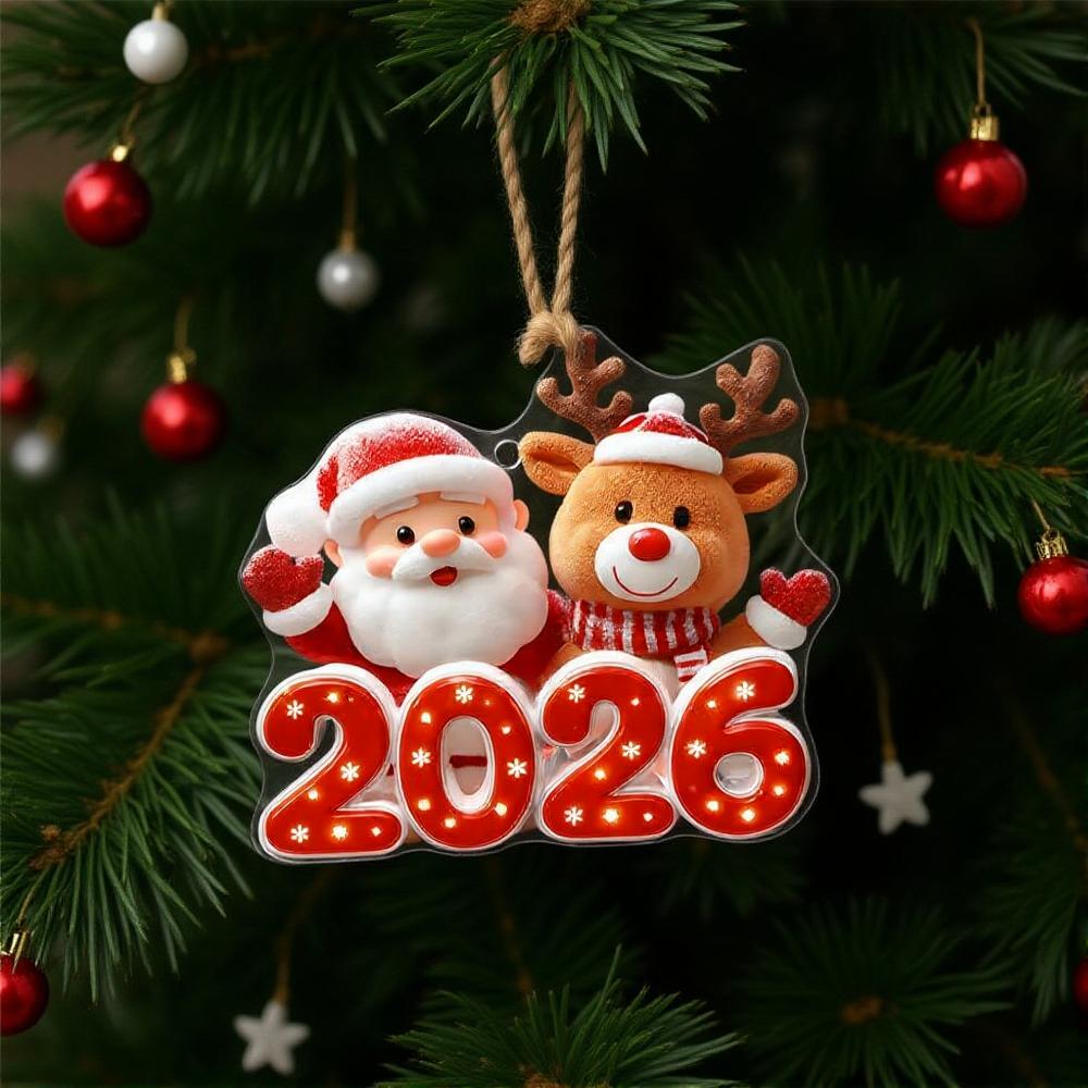 2D Flat Acrylic Cute Cartoon Santa Claus Snowman Elk Pendant 2026 Happy New Year Gift Xmas Tree Hanging Ornament Home Xmas Decor