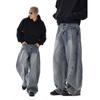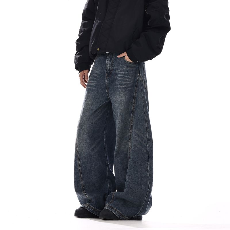 American Retro Distressed Washed Scimitar Wide-Leg Jeans for Men and Women, Loose Straight-Leg Versatile Casual Wide-Leg Pants