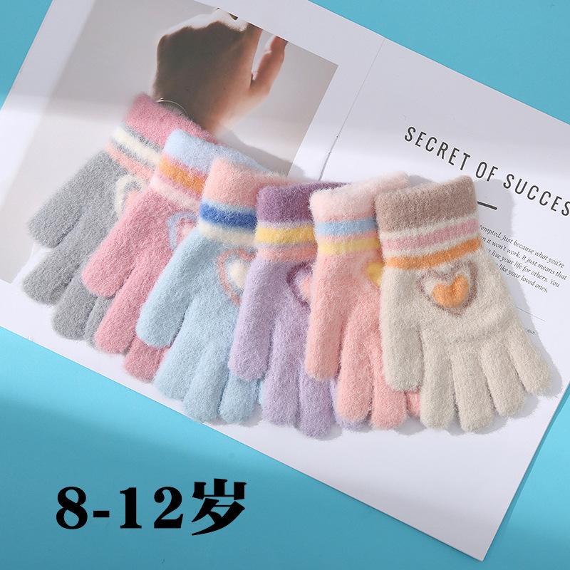 Neue Liebe gestreiftes Mädchen warme Handschuhe Winter Kälteschutz verdickt Kinder gestrickt Radfahren Spielen Schnee Schreiben fünf Finger