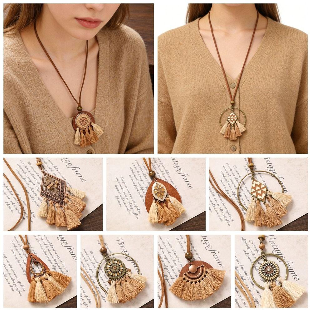 Eleganter Türkis Muschel Anhänger Trendige Braune Anhänger Halsketten Vintage Boho Lange Halskette Schmuck