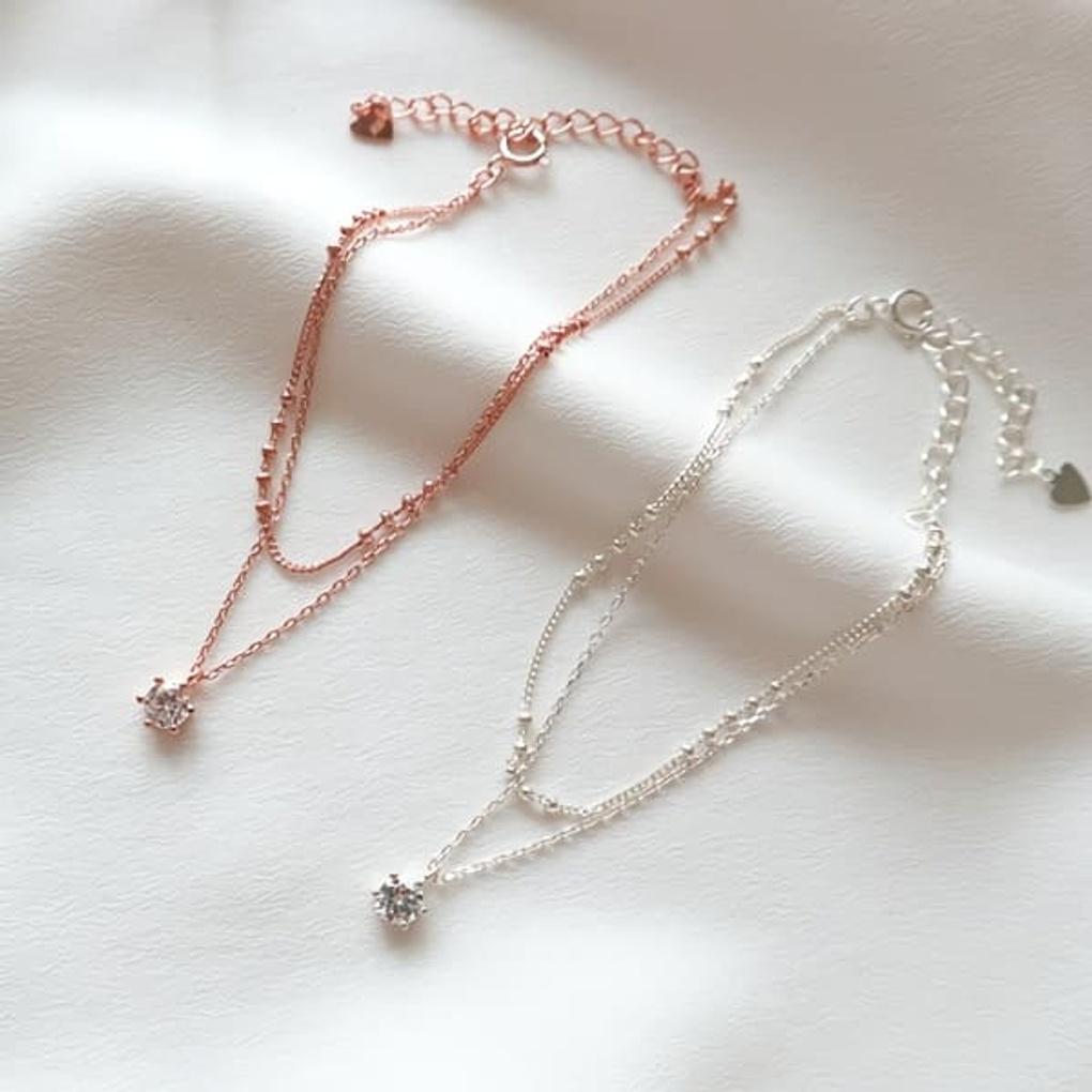 Women's 925 Silver Twin Line Point Cubic Pearl Anklet Bracelet