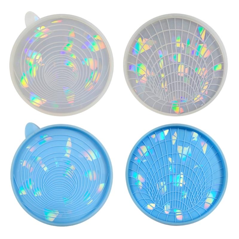 Untersetzer Holographische Silikonform DIY Runder Untersetzer Holographisches Laser Licht und Schatten Tassenuntersetzer Dekoration Harzformen