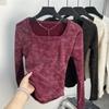 Quadratischer Kragen Verdickte Taille Schlichtes Batik-Unterhemd Top Bequeme Innenschicht Deutscher Samt Langärmlig