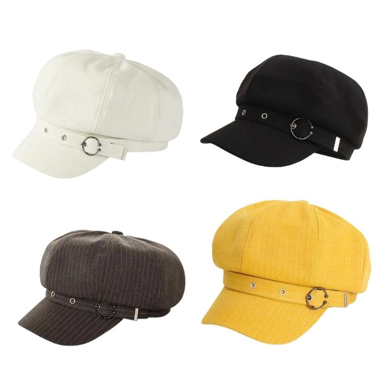 Spring Beret Hat Woman Commutes Octagonal Hat Camping Taking Photo Beret Hat with Metal Fastening for Girlfriend