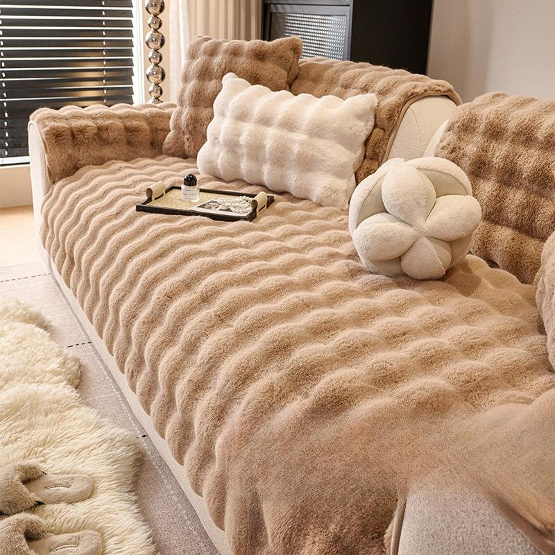 Neuer Herbst- und Winter Hase Plüsch Warm Plüsch Sofakissen Verdicktes Rutschfestes Kissen Leder Sofaüberwurf Überzugstoff