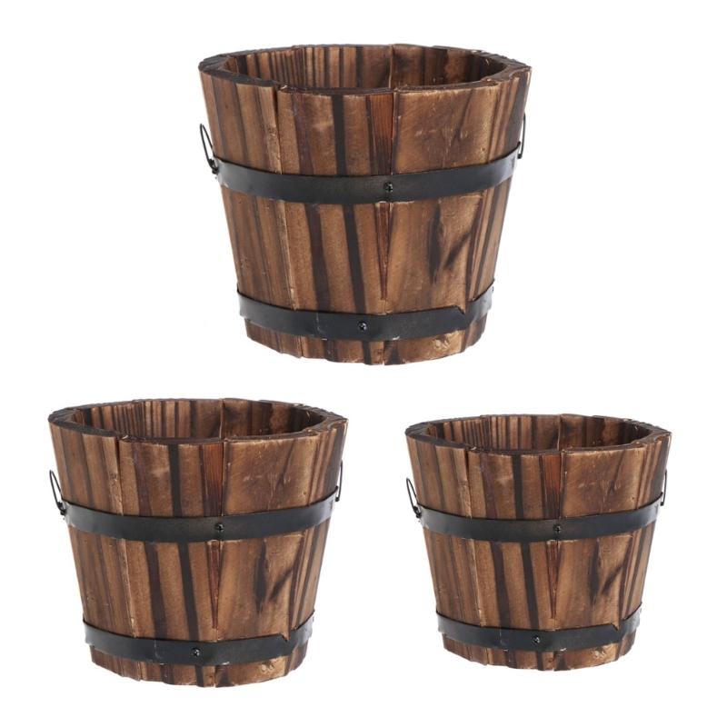 Planter Pots Wood Flower Barrels Indoor Outdoor Decors Succulent Plant Bucket for Garden Farmhouses Home Decorations