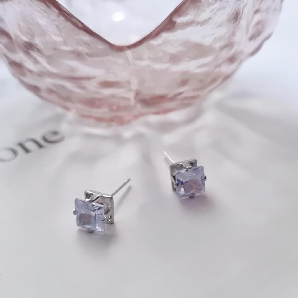 Damen Einfache Quadratische Kubische Silbernadel Ohrringe