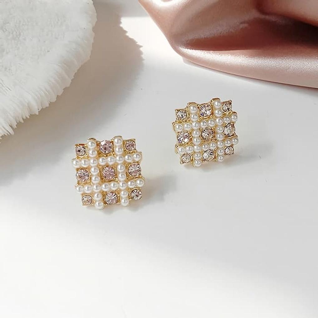 Silver Needle Pearl Freshwater Earrings, Earring Chain, Daily Honeycomb Cubic
