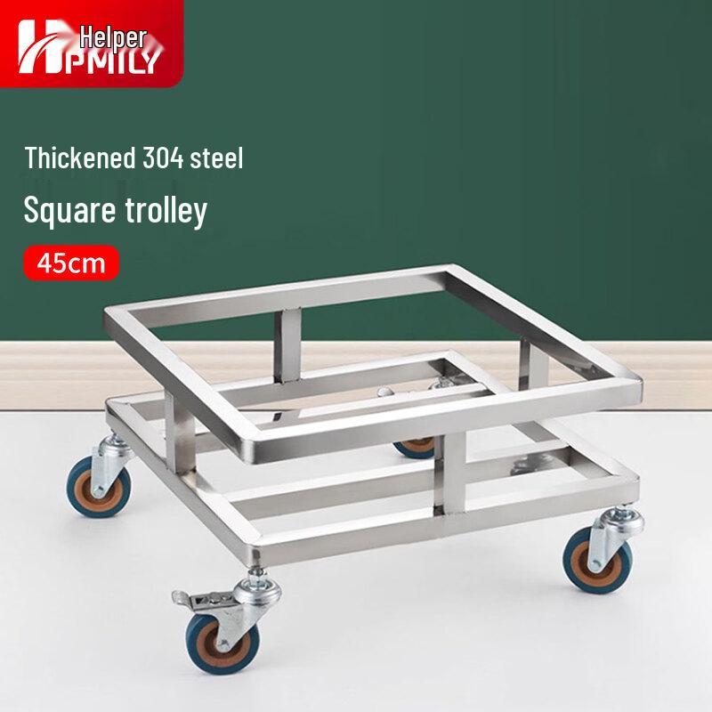 This HPMILY multi-purpose rolling storage cart is crafted from thickened 304 stainless steel, offering exceptional durability and a polished finish. Featuring a sturdy 1-layer square design with smooth-rolling wheels for easy mobility, it's ideal for kitchens, workshops, or any space needing versatile storage for items like insulated soup barrels, water buckets, flower pots, or even fish tanks. Its robust construction and industrial style add both functionality and a modern touch to your decor.