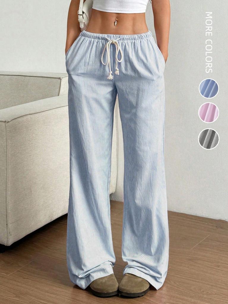 Autumn New Women's Clothing Striped Cute Wide Leg Pants Floor Length Casual