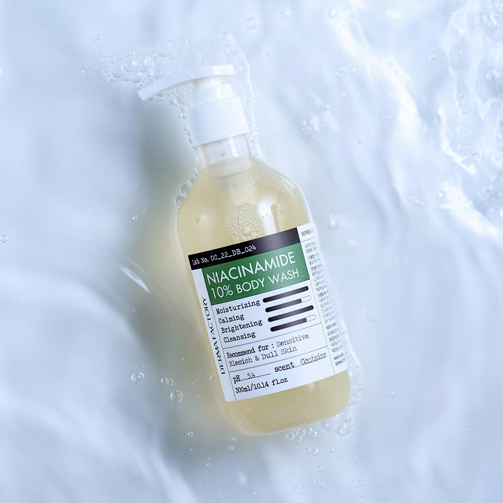 Niacinamid Duschgel, veganes Duschgel, aufhellender Körperreiniger, mild saures Duschgel, Derma Factory, Körpertonpflege, koreanische Hautpflege