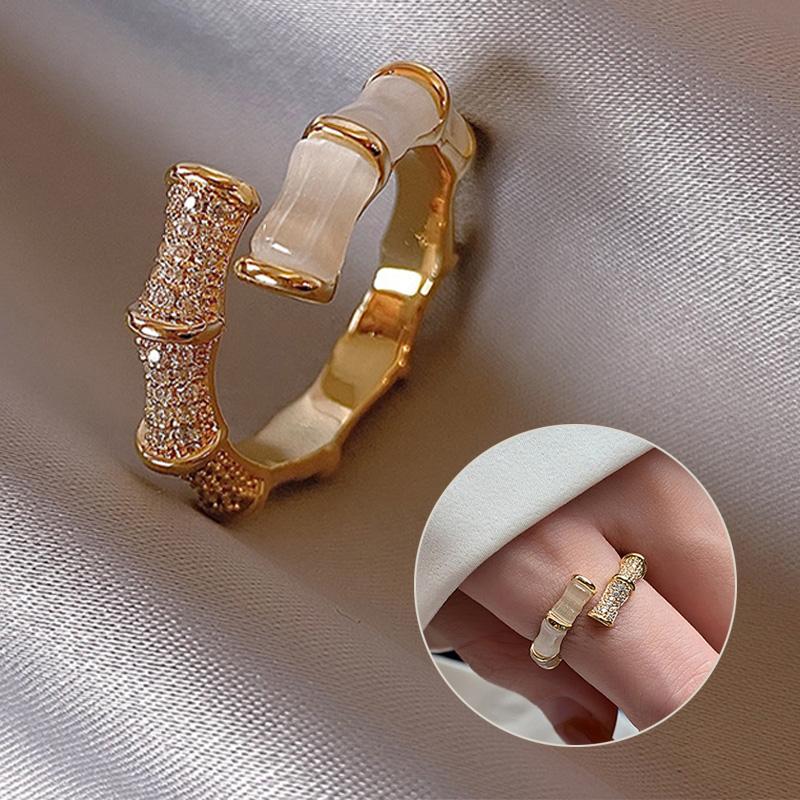 New Design Opals Bamboo Ring Shape Gold Color Adjustable Rings Korean Fashion Jewelry Party Luxury Accessory For Woman Gift