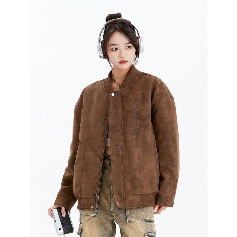 Wassup American Retro Lapel Leather Jacket for Men, Autumn and Winter New Trendy Brand Loose Suede Jacket Casual Jacket for Women