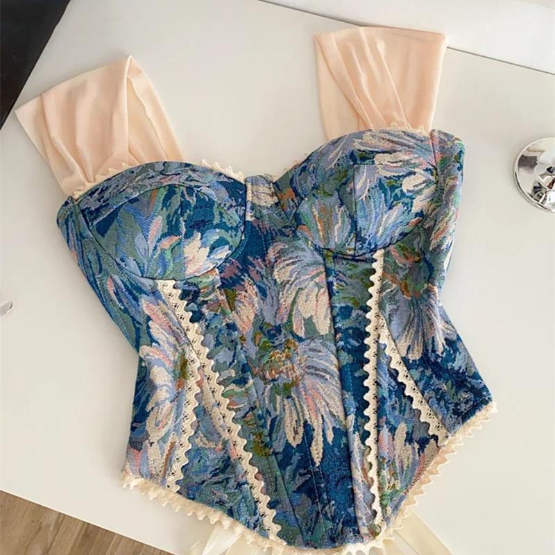 Amerikanischer Retro-Print Abend-Camisole-Träger Spitze Gespleißt Schlank Streetwear Floral Vintage Strand-Tanktop