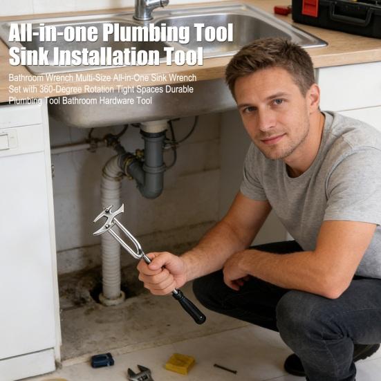 Seine 360-Grad-Drehfunktion ermöglicht einen einfachen Zugang zu engen Räumen unter Spülbecken und verbessert die Wartungseffizienz.. Als Beckenschlüssel, Rohrschlüssel und Steckschlüssel dient er und ist kompatibel mit Küchen- und Badarmaturen, einschließlich Spülen, Wasserhähnen, Schläuchen und Verbindungsstücken..