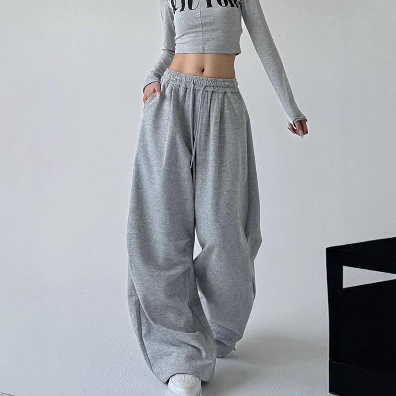 Harajuku Weite Jogginghose Damen Streetwear Baggy Oversize Grau Sporthose Hoher Bund Kordelzug Lässige Jogginghosen Hosen