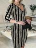 Fall Winter Women's Dresses Geometric Pattern Bodycon 7/8 Sleeve Mini Dress