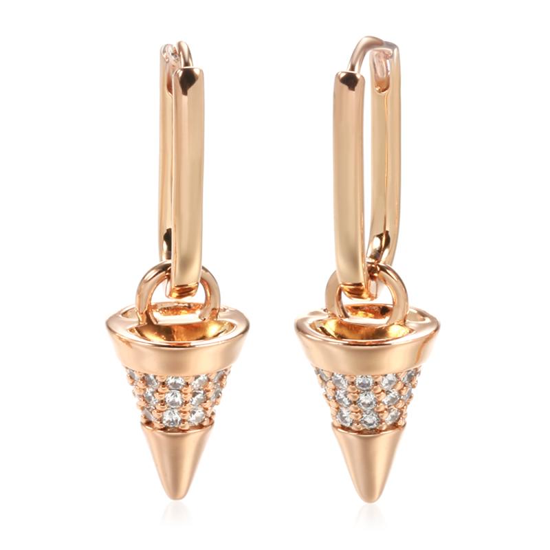 Unique Geometric Cone Drop Earrings For Women Trend Rose Gold Color Natural Zircon Earrings Luxury Party Daily Jewelry