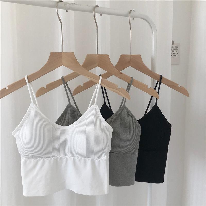 Damen Herbst Geripptes Nahtloses Bandeau Camisole mit Schönem Rückendesign