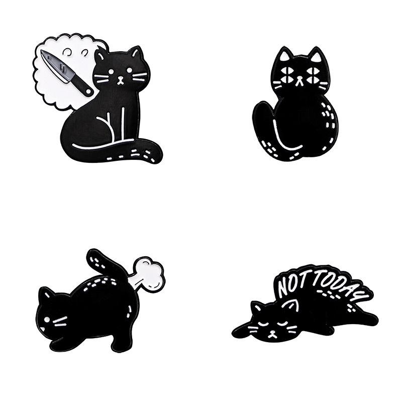 Adorable Black Cat Cartoon Brooch: Simple Animal-Shaped Accessory
