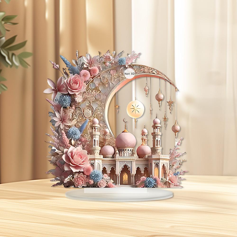 1 Stück Schloss beim rosafarbenen Mond. Acryl-Tischdekoration, Schlafzimmerdekoration. jemandem ein Geschenk machen