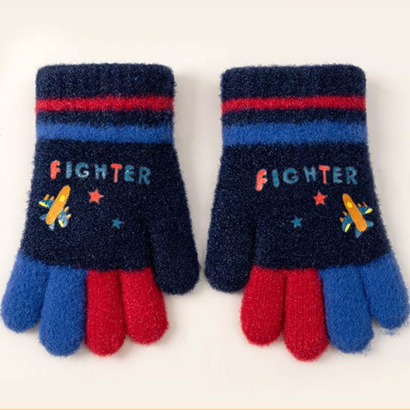 Children's knitted finger cute cartoon plane thickened warm primary school boy winter outdoor cold riding gloves