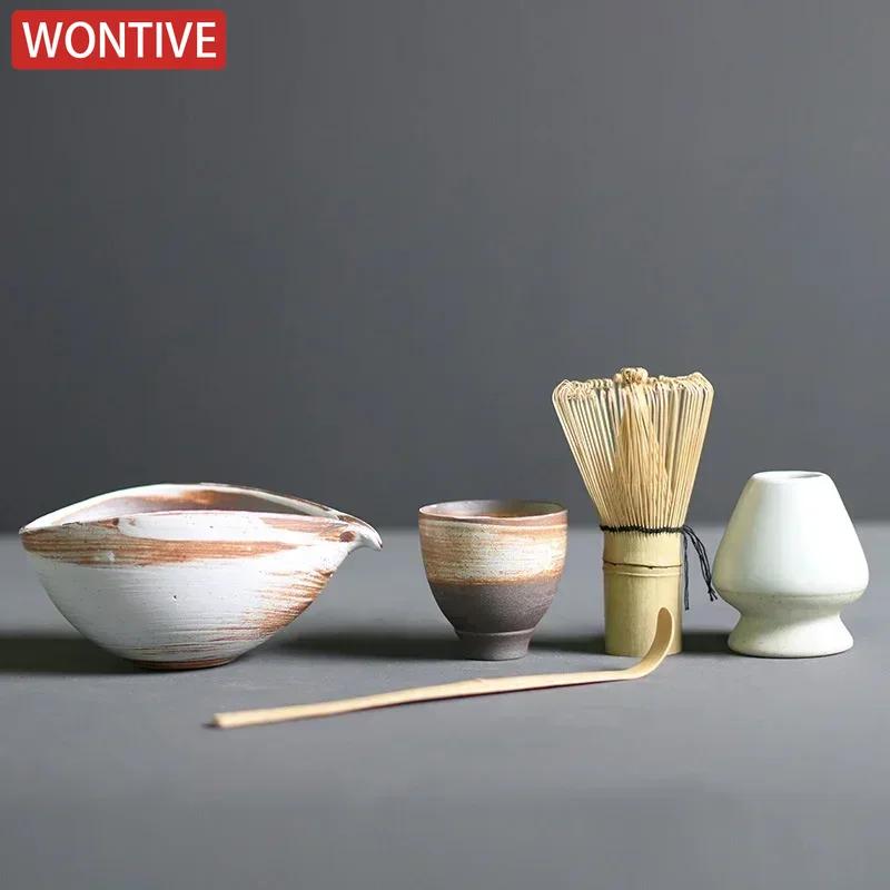 3/4 Stück Handgefertigt Zuhause Leicht zu Reinigen Matcha Tee Set Werkzeugständer Kit Schale Besen Schaufel Geschenk Zeremonie Traditionelles Japanisches Zubehör