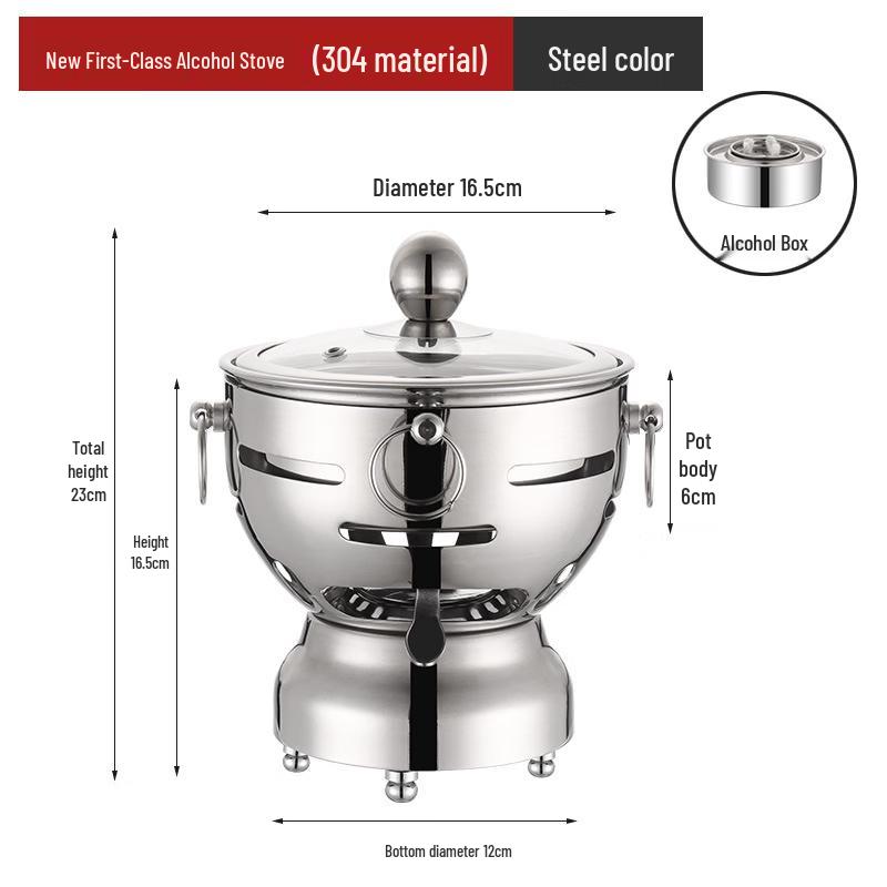 ZISIZ 304 Stainless Steel Mini Hot Pot with Alcohol Burner