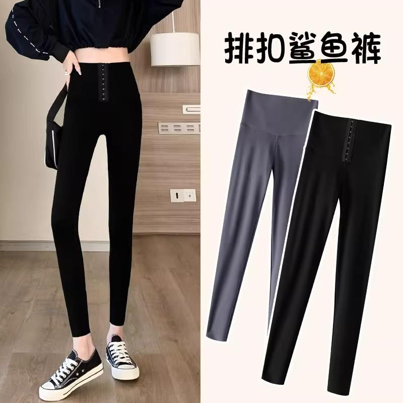 Breasted and legged shark pants women's wholesale outer wear spring and autumn black barbie high waist abdominal pressure nine-point yoga pants