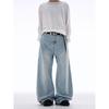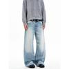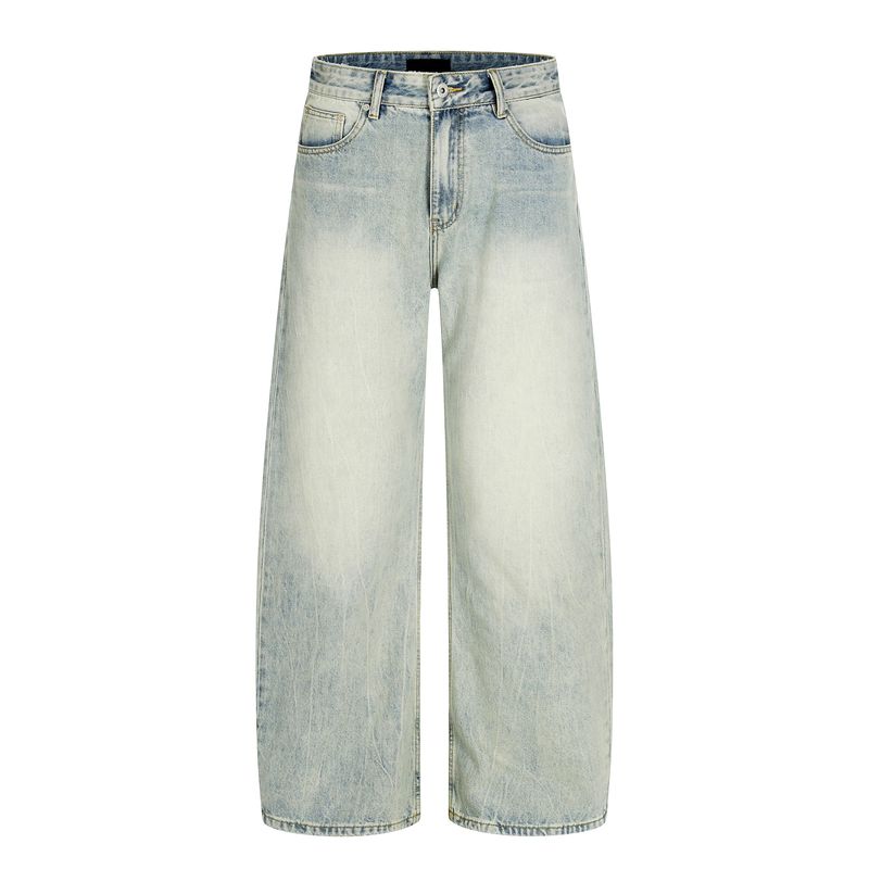 Kisko New American-Style Washed Cracked Gradient Scimitar Jeans for Men and Women, Trendy Brand, Cool and Loose Straight-Leg Pants