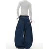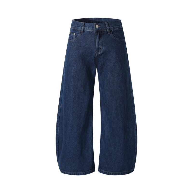 Kisko American Retro Washed Distressed Dark Blue Scimitar Jeans for Men and Women, Loose Straight-Leg Slimming Long Pants