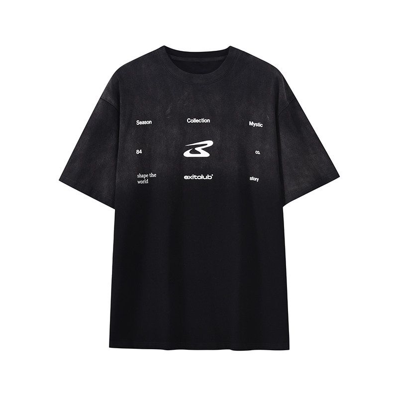 Black of Exit National Trend Washed Gradient Distressed Loose Pure Cotton Short-Sleeve American High Street Heavyweight T-Shirt for Men and Women