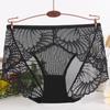Damen Sexy Spitze Mid-Waist Transparent Panties, Nahtlos Übergröße, Reiner Baumwollzwickel, Dünner Stil Dreieck