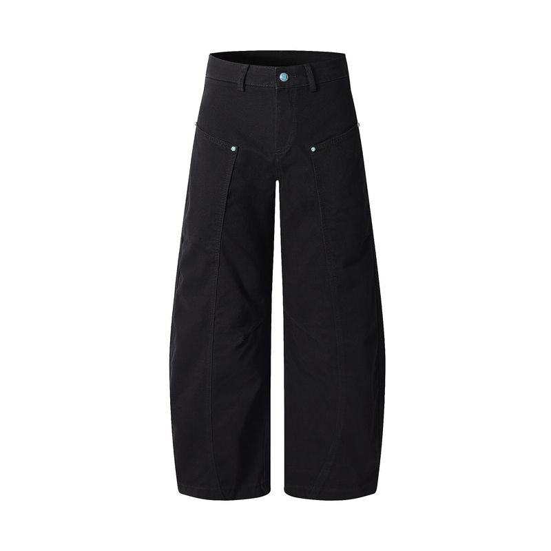 Kisko Design-Inspired American-Style Turquoise Black Scimitar Jeans for Men and Women, Simple Loose Straight-Leg Versatile Pants