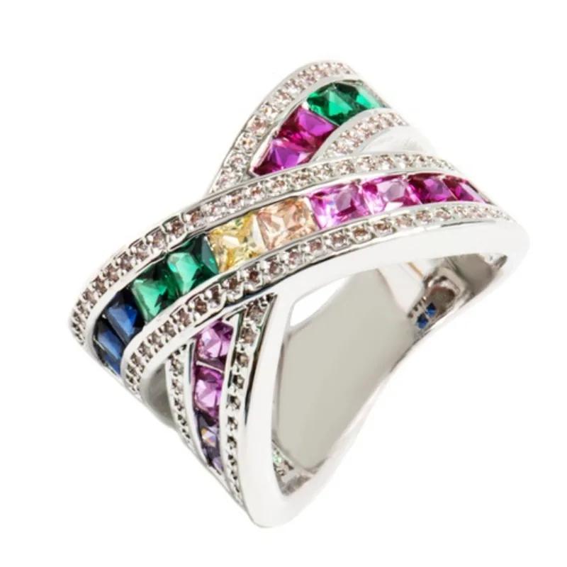 New Fashion Colorful Cubic Zirconia Ring For Women Elegant Bridal Wedding Jewelry Band Cross Geometric Crystal Rings Gifts